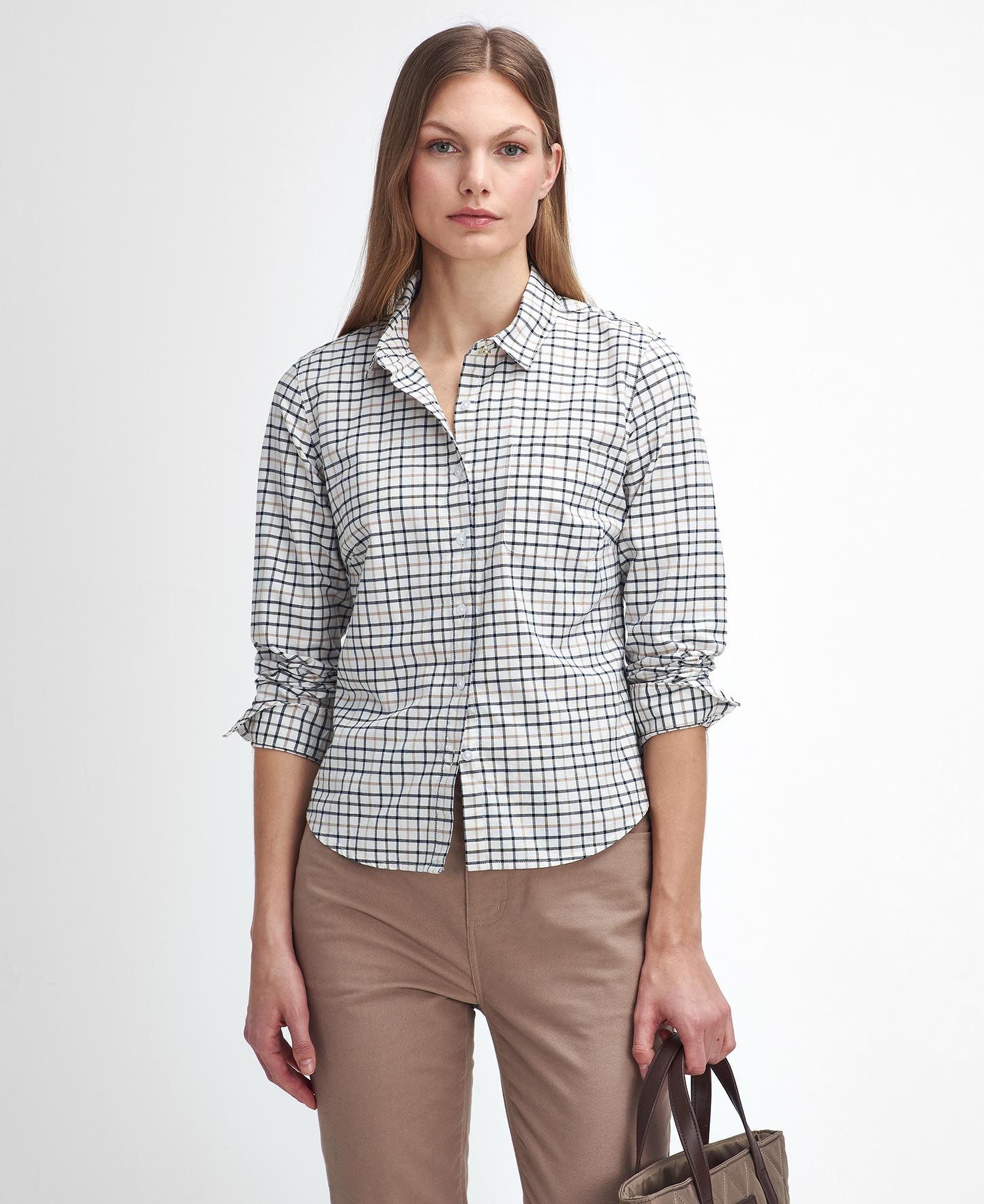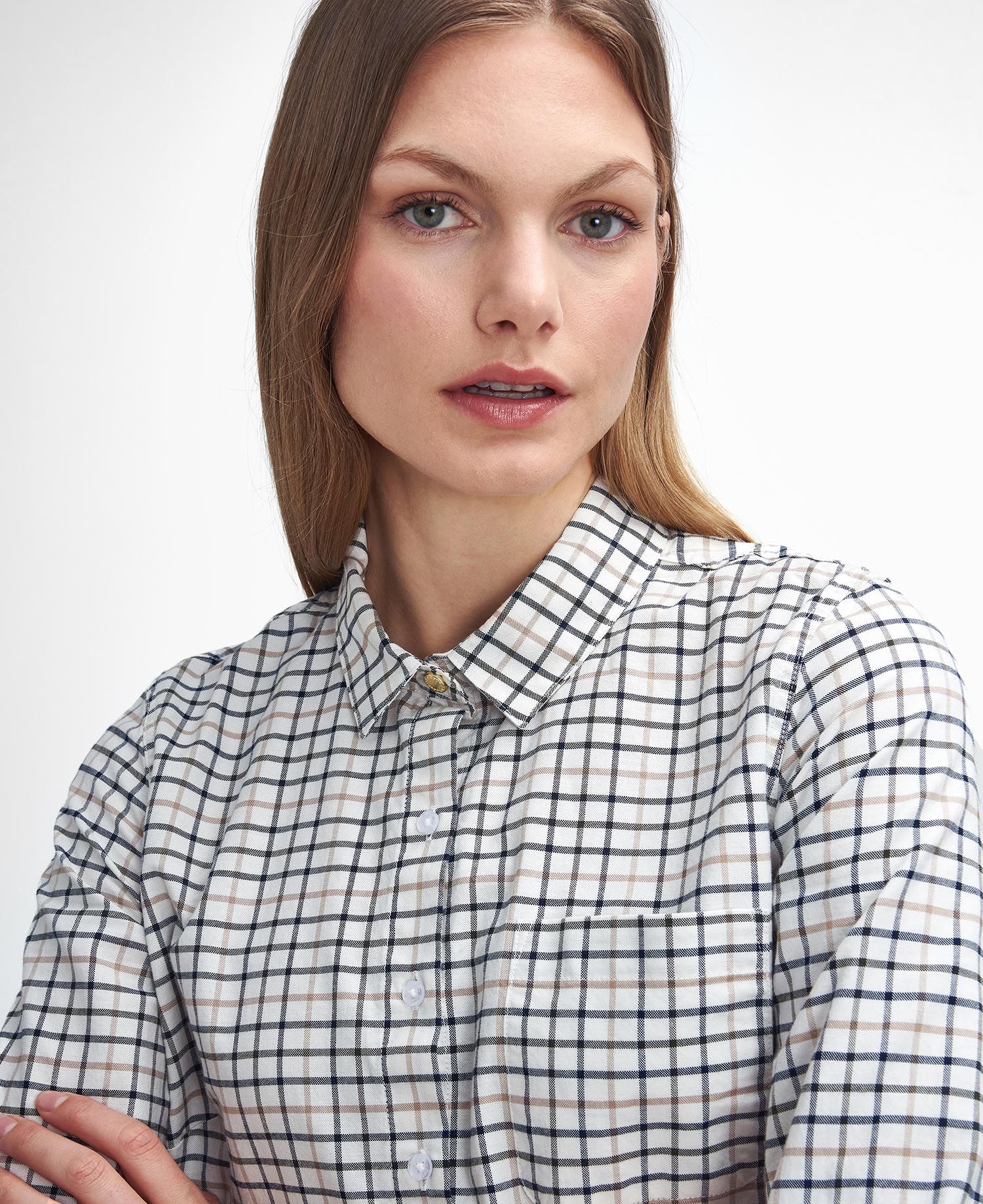 Met een neutrale ruit over het hele shirt is het perfect om te combineren met jeans en sneakers voor een simpele alledaagse look.