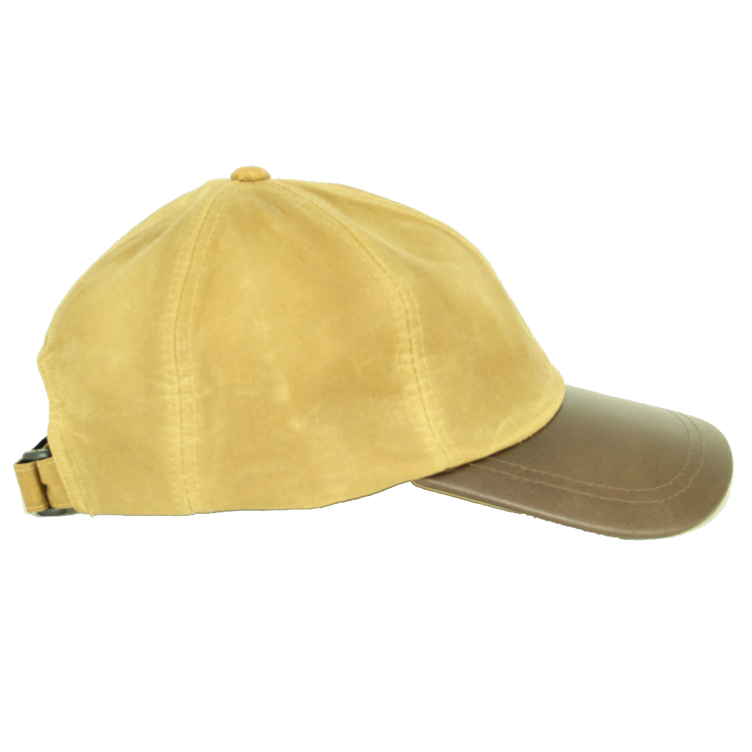 Sportieve wax baseball cap afgewerkt met een leren klep.