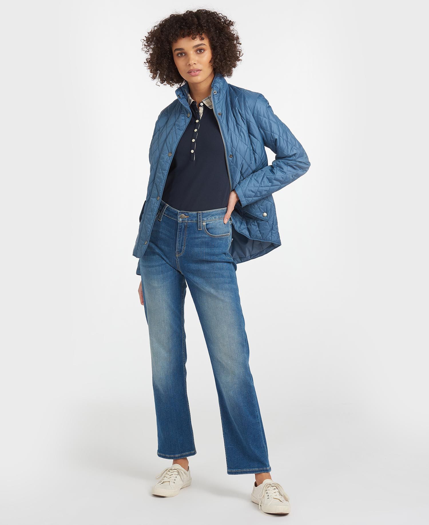 De Barbour Flyweight Cavalry-quilt biedt warmte zonder al te veel volume. Het jack is gemaakt van een doorgestikte nylon stof en heeft gevormde naden aan de voorkant, een verlaagde achterzoom en taillebandjes aan de achterkant zorgen voor een flatterend silhouet.
