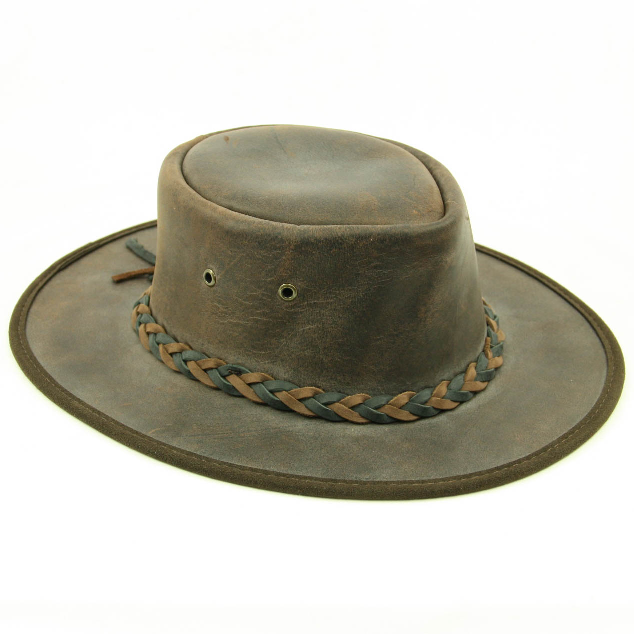 Deze robuuste hoed van het Australische merk Barmah is dé perfecte metgezel voor alle weersomstandigheden. Gemaakt van waterdicht en snel drogend leer, met ingebouwde UV-bescherming, trotseer jij moeiteloos regen, zon én wind.