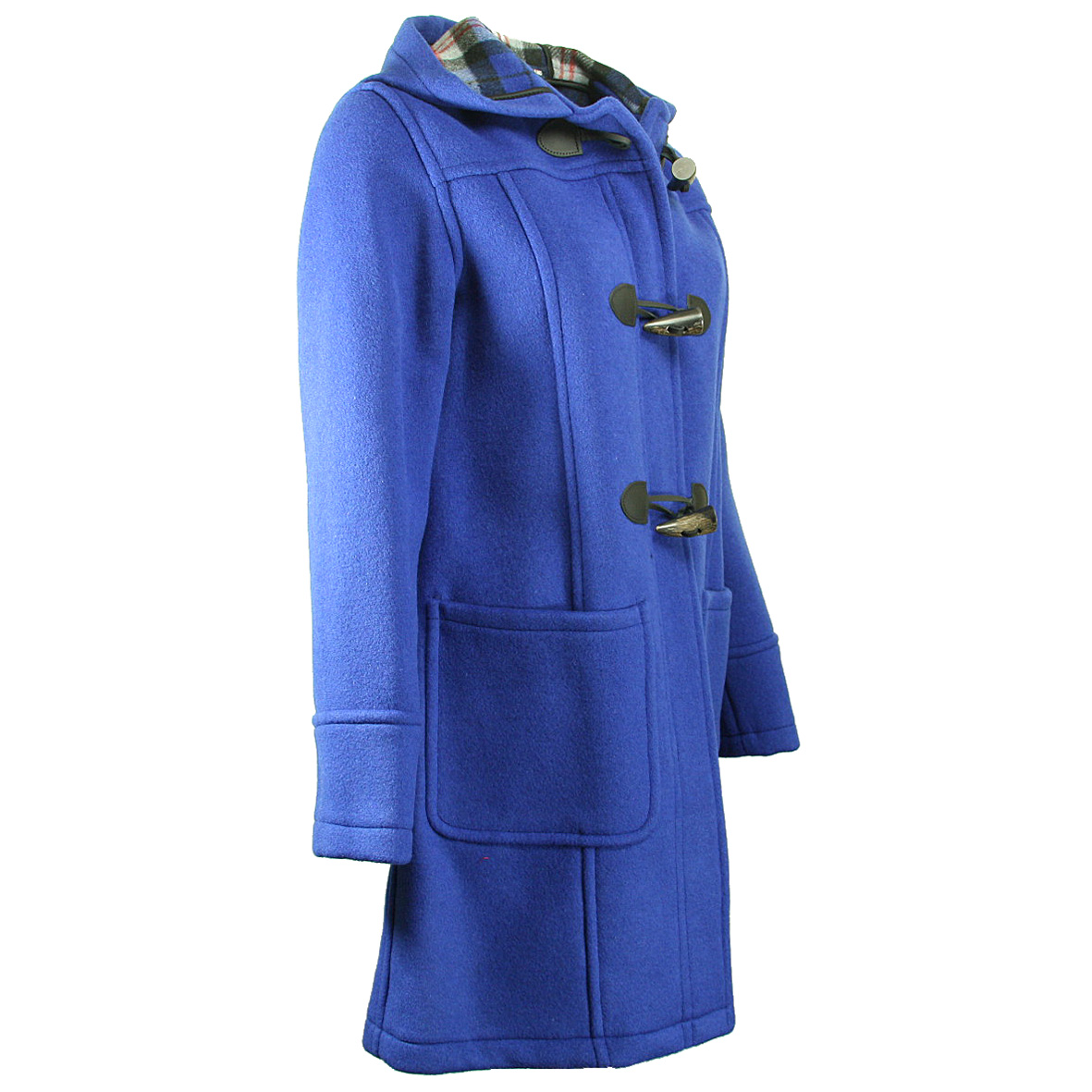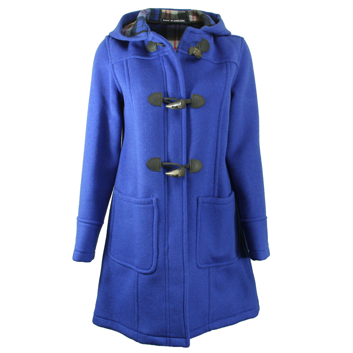 Bijzonder fraai afgewerkte jas in een Koninklijke blauwe kleur met contrasterende Engelse ruit aan de binnenkant en aan de achterzijde een split.