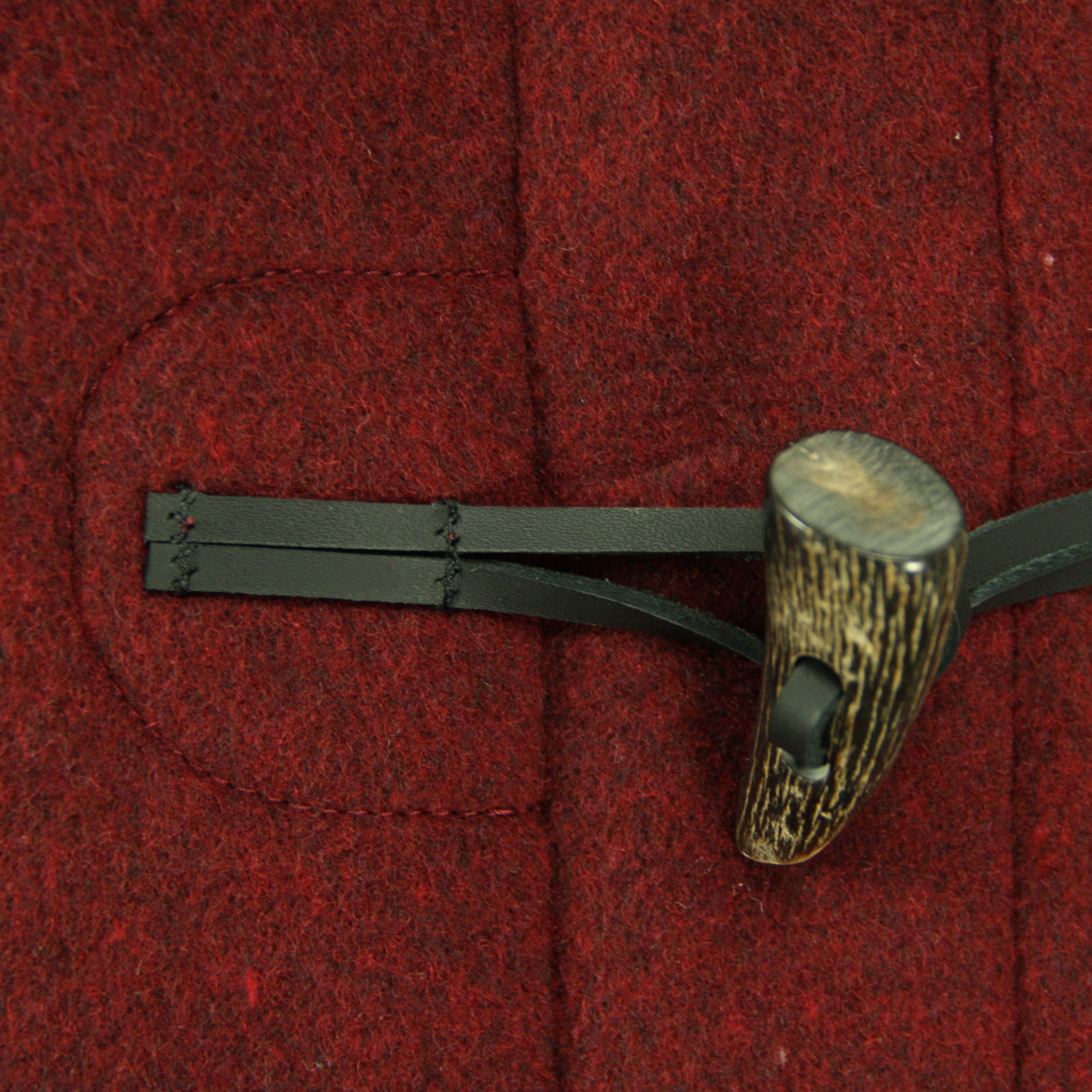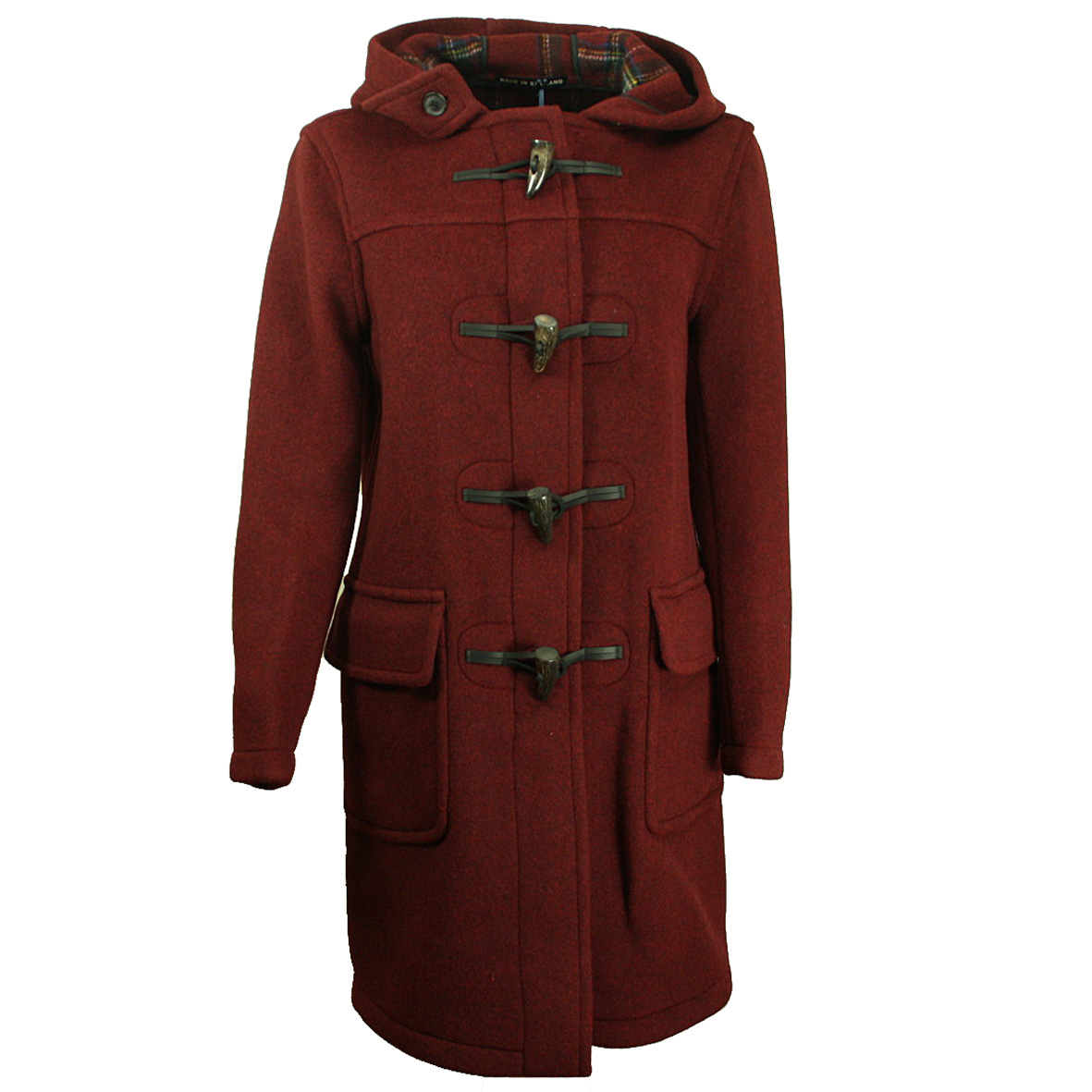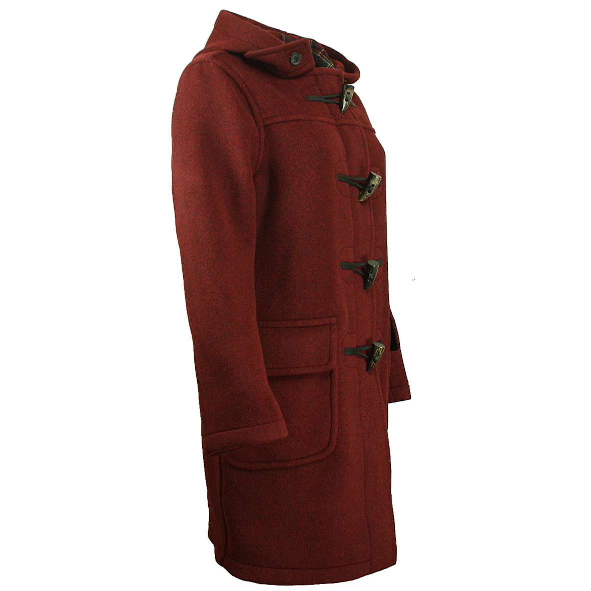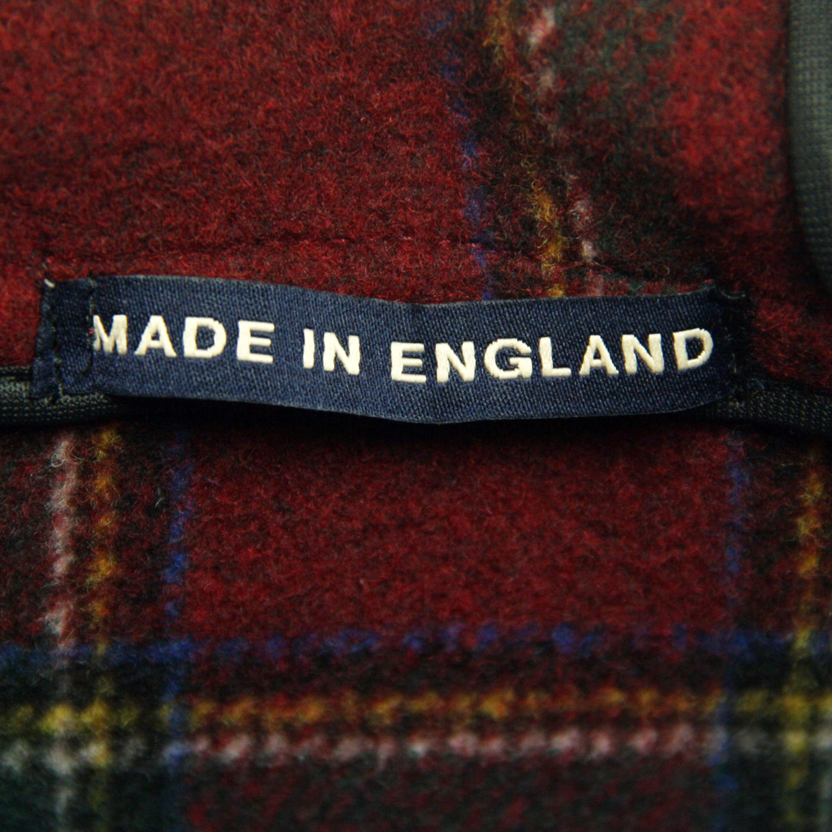 Originele houtje-touwtje jas van vroeger, een stoere warm rode Engelse klassieker met geruite voering.