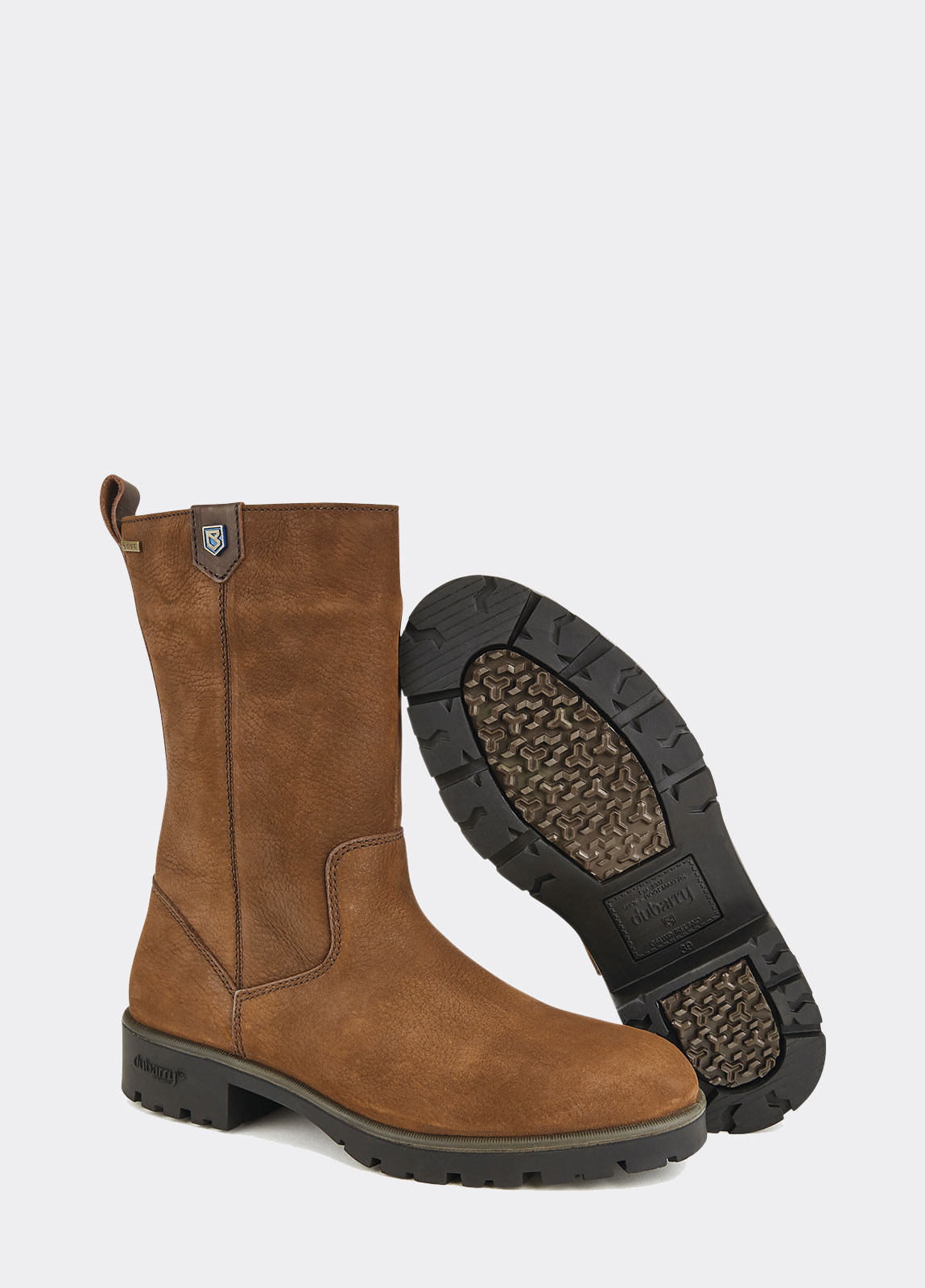 De laars is gemaakt van Dubarry’s kenmerkende DryFast-DrySoft™ leer en is zowel waterafstotend als ademend