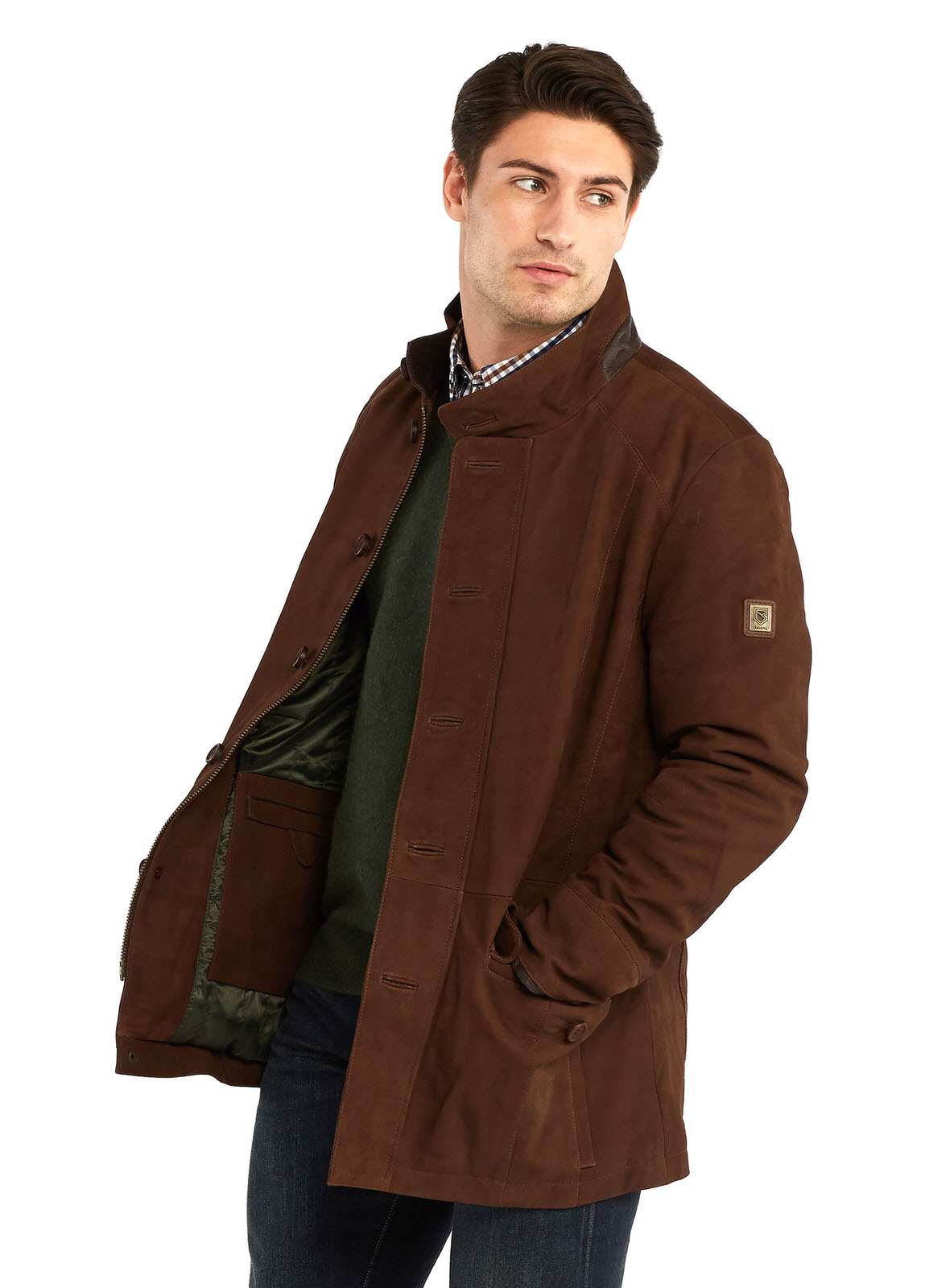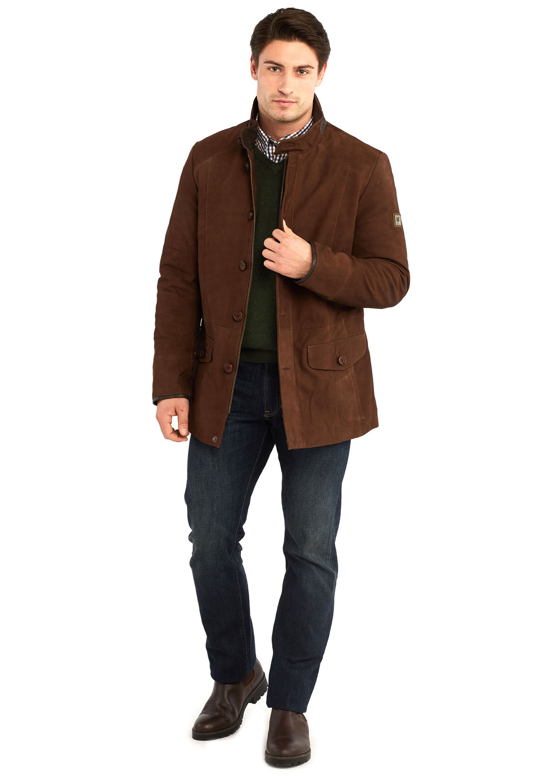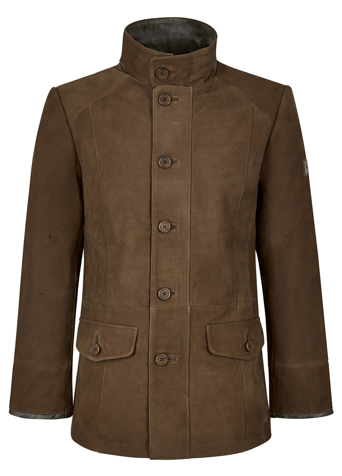 Uitgevoerd met leren details in mahogany kleur op de mouw en kraag
