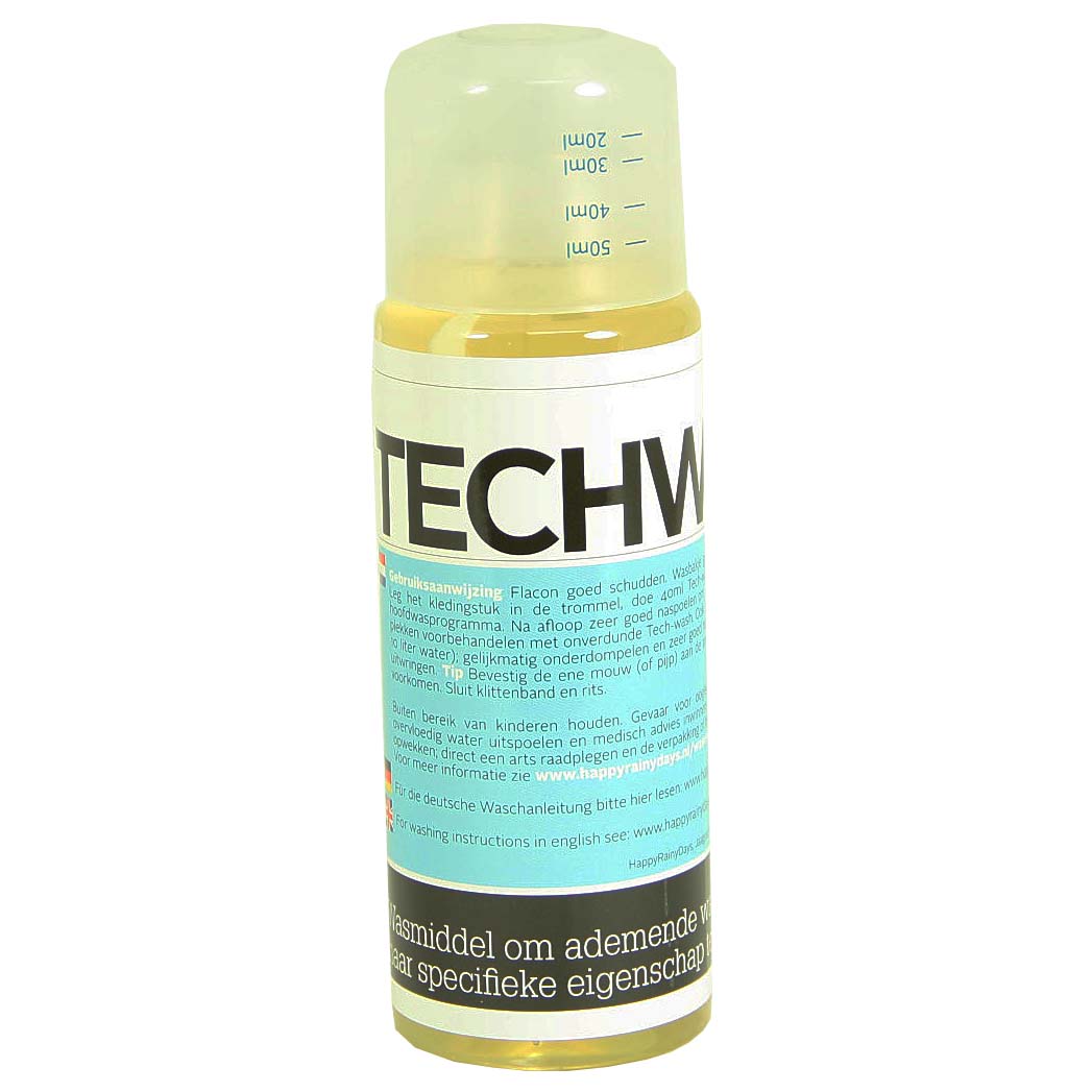 Wasmiddel om de kwaliteit van uw waterdichte regenkleding te behouden.